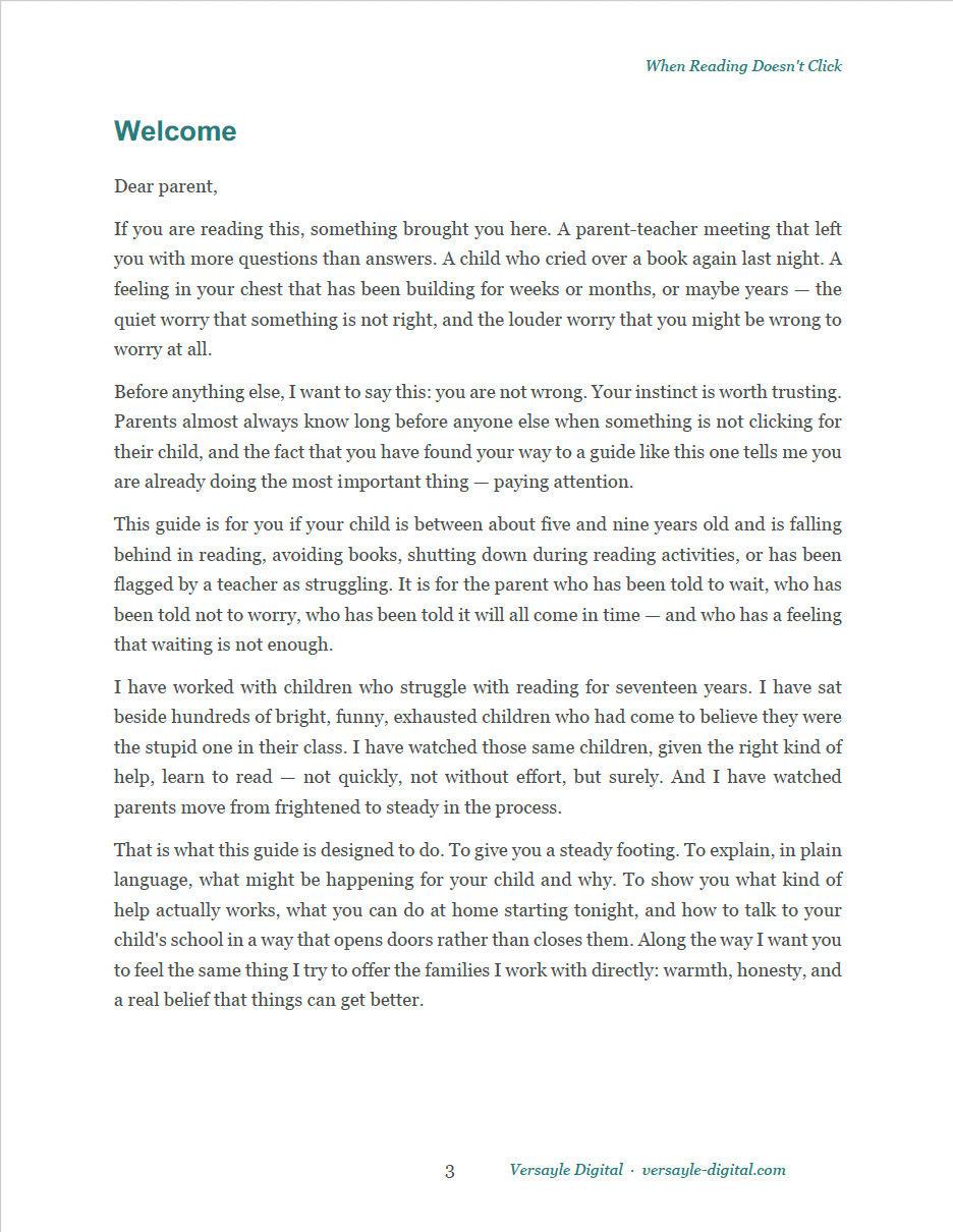 The Versayle Digital Library is a growing collection of practical, evidence-informed guides for parents — covering both your child's development and your own regulation, focus, and capacity as the adult in the room.